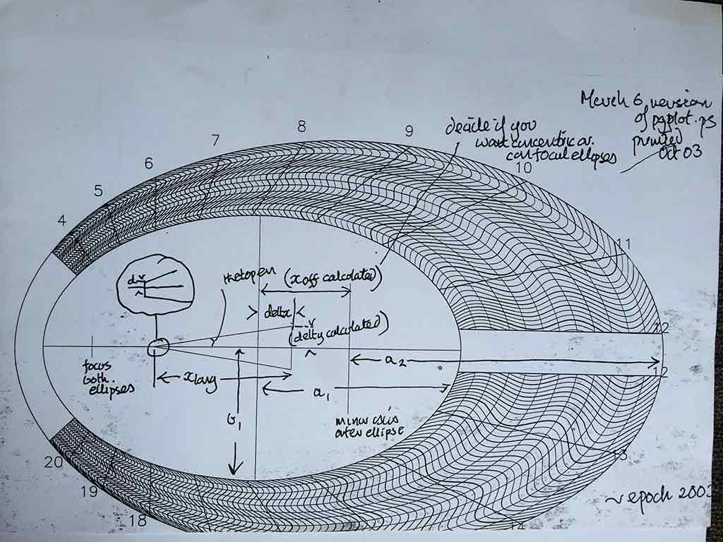 The shape and orientation of the Earth’s orbit and the tilt of the Earth’s rotation axis are encoded in the design of the dial. These all change very slowly with time and provide an ultimate limit on the accuracy of the dial. It is this variation that has been responsible for the steady ebb and flow of ice ages over the last three million years.